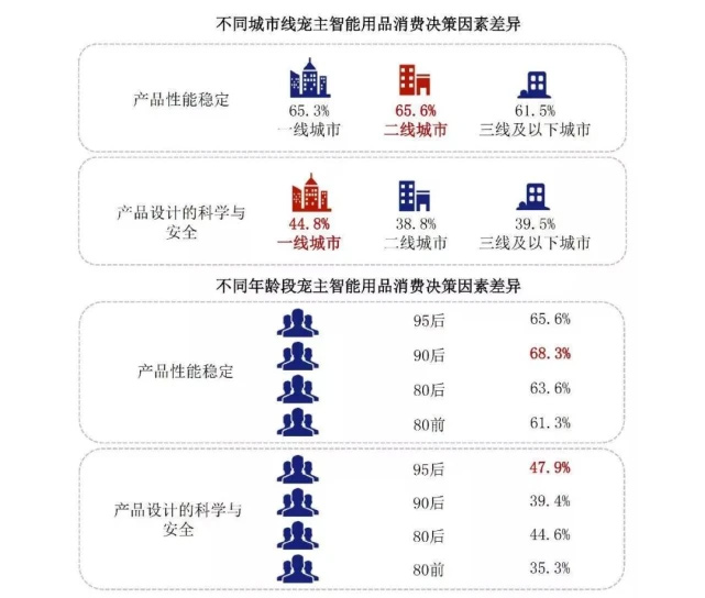 《2020年中国宠物行业白皮书(消费报告)》数据也表明,90后是养宠人群的主力军,比例达到了38.1%,80后占比36.2%。新一代养宠人群中,从城市维度看,44.8%的一线城市宠主关注产品设计的科学与安全,47.9%的95后更关注产品设计的科学与安全。这从侧面表明,宠物市场的消费潜力是巨大的。