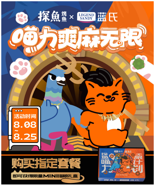 如今,“养宠”是各大社交平台上的热门话题。无论是基于爱、或是寻求对压力的消解,都市人群对宠物的需求空前高涨,其中又尤以年轻群体为主。随之而来的,宠物行业消费水平稳定增长,宠物方向的营销合作的潜力也逐渐彰显。作为餐饮赛道中关注年轻群体的领军品牌,探鱼洞察到现代生活中宠物重要性的逐渐提升,携手蓝氏推出“喵力爽麻无限计划”,通过线上线下一系列的活动,营造萌宠场景,分享美食、感受爽麻无限的快乐。