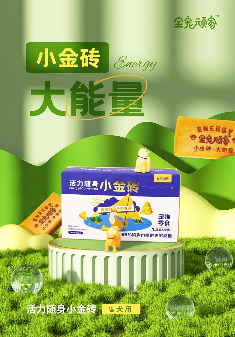 全宠顽家活力随身小金砖,宠物狗狗补充能量出行露营营养代餐。