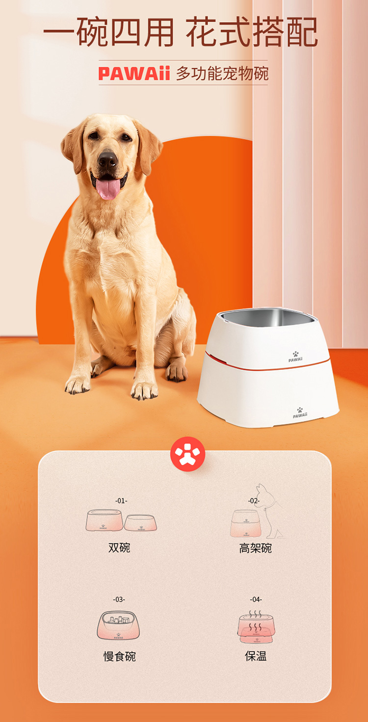 产品优势:一碗四用,随心组合,防打翻,大型犬也适用