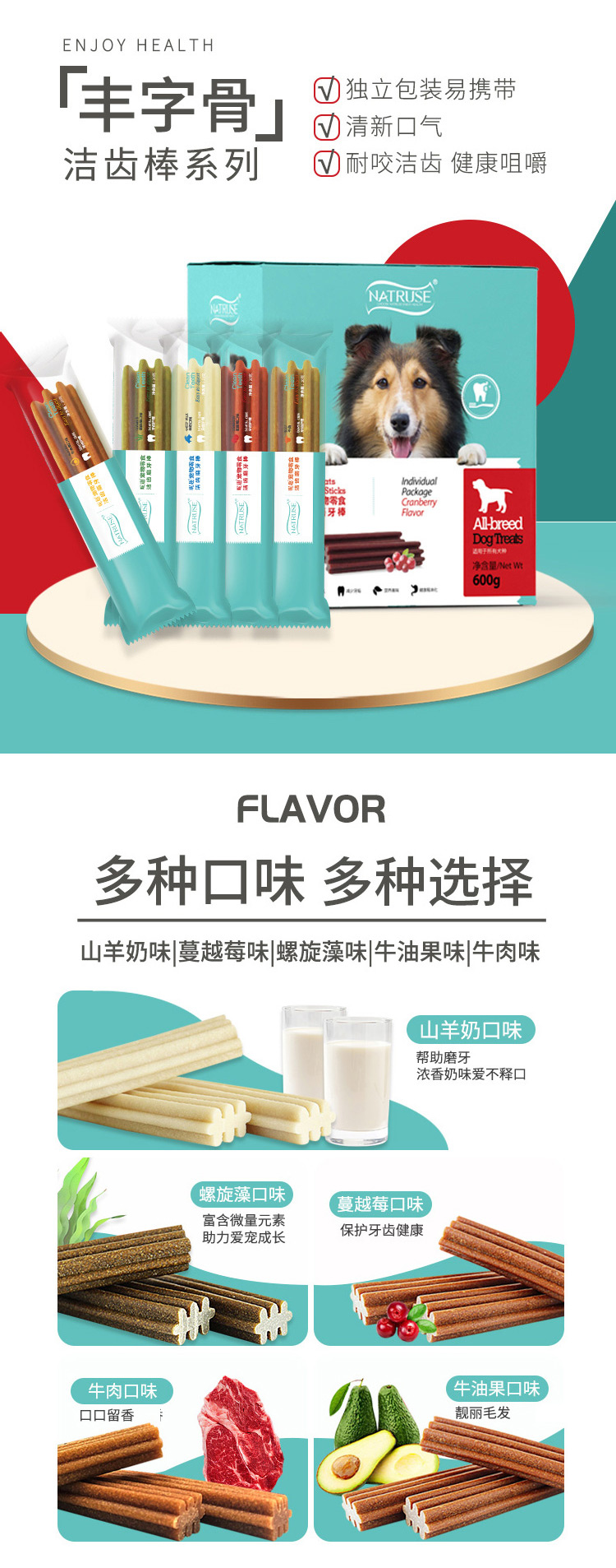 NaTruse昵趣牛肉口味狗狗洁齿骨盒装20g*30支,磨牙洁齿清口气,“丰”字型牙刷结构吻合牙齿缝隙 ,30支独立包装。