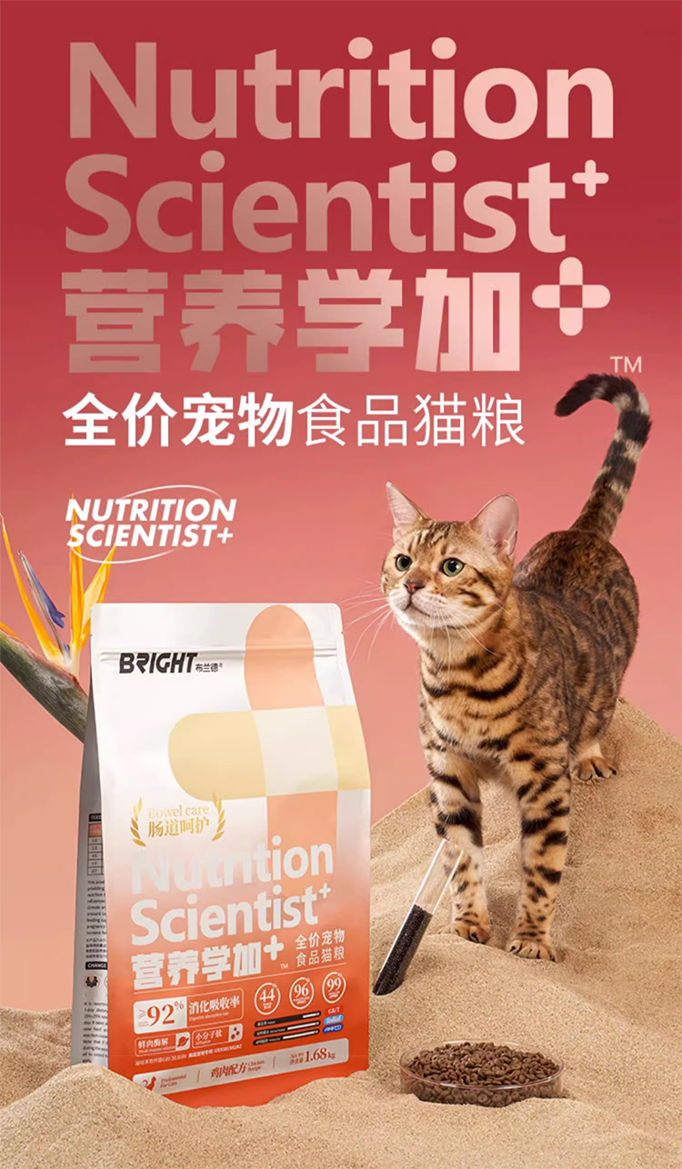 BRIGHT布兰德全价营养学加+宠物食品猫粮1.68kg,科学营养定制,鸡肉配方,高品质肉源,特别添加活性益生菌。